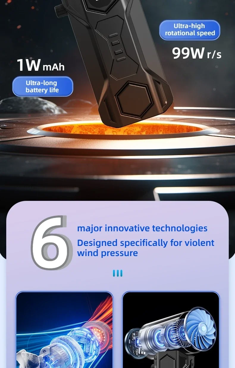 Xiaomi Turbo Jet Blower 990000RPM High Power Air Blower Brushless Motor Turbo Fan Wind Speed 75M/S 10000Mah Violent Air Blower