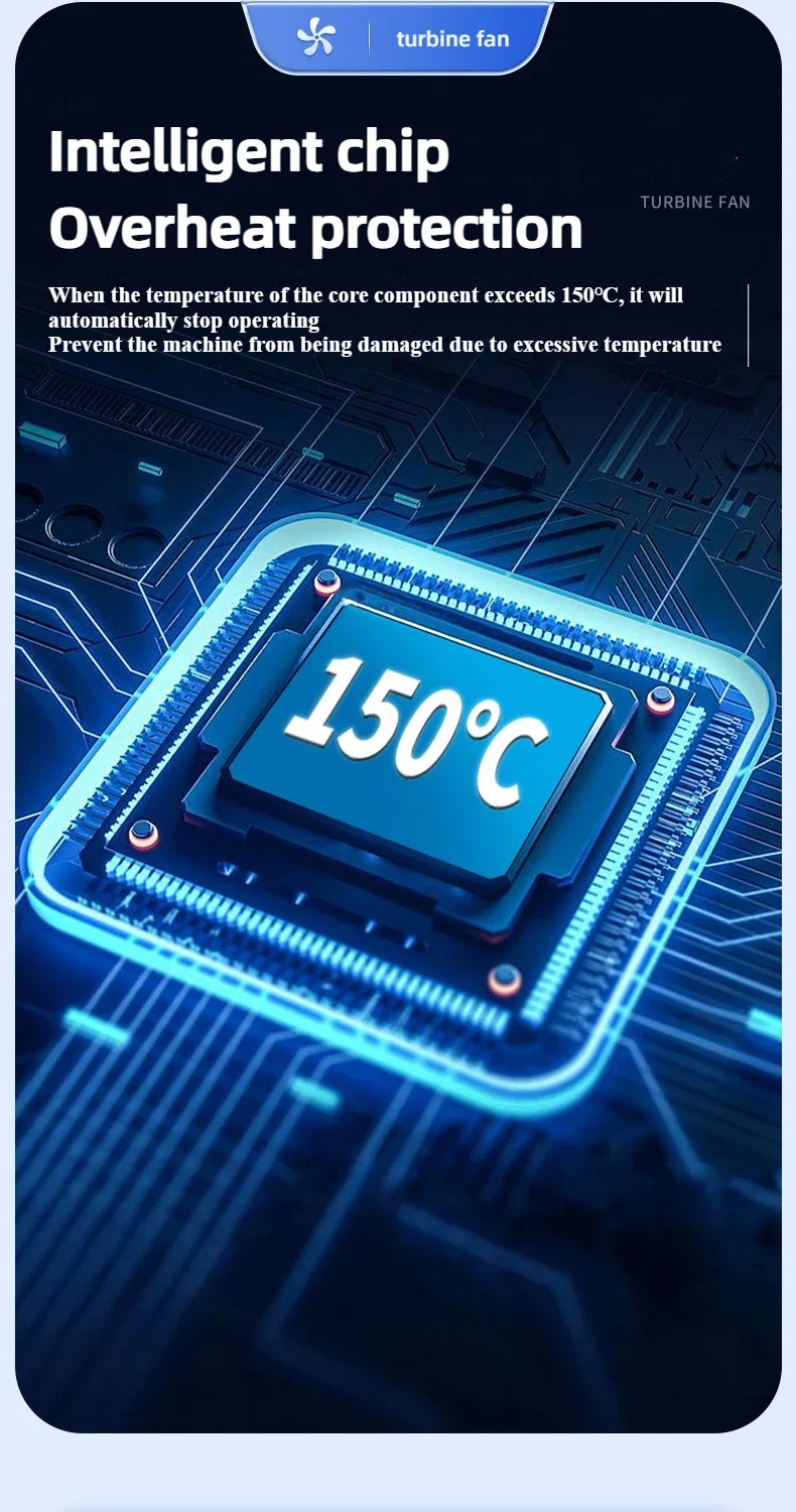 4. Infinite speed regulation, easy to operate with one hand, two in one switch speed regulation, increasing air volume from small to large, better protecting the motor.